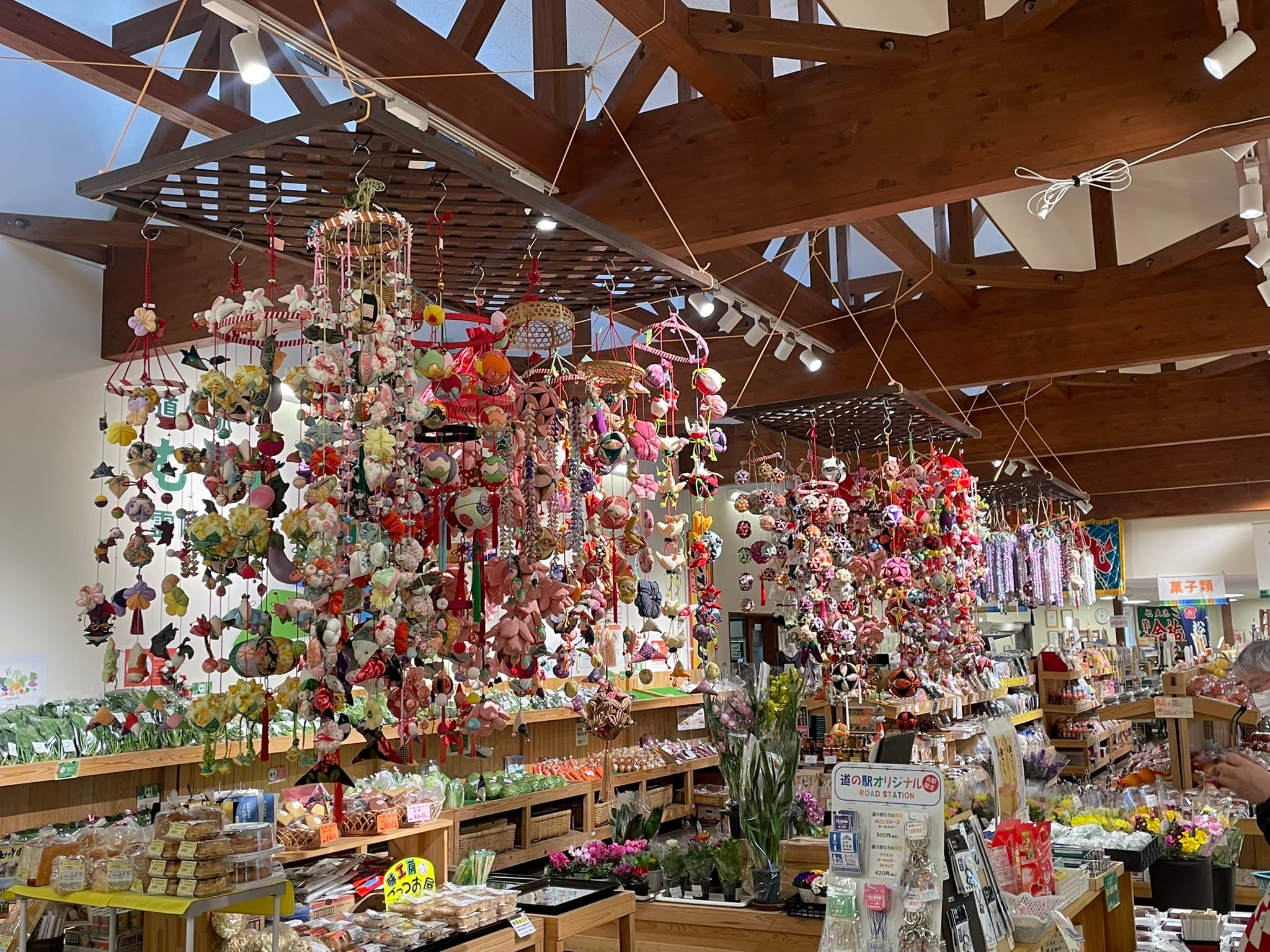 出荷者の皆さんのご協力により店内に吊るし雛飾りを設置しました